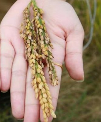 As of October, highly toxic pesticides were applied for a total of 4 times. However, the rice stalks were infected with brown plant-hoppers and a vast majority of rice field was yellowing and withering. Consequently, parts of the seriously infected area were cut out.