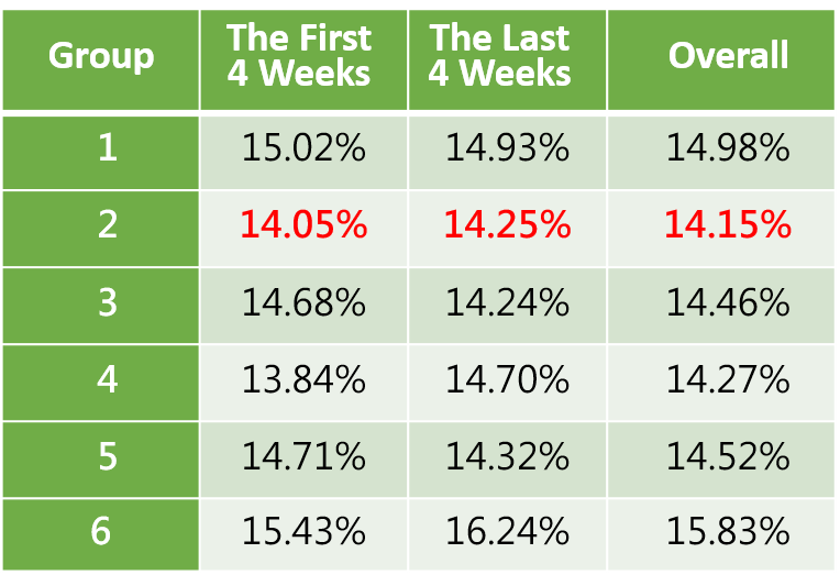 In terms of fat percentage, the fat percentages in the experimental groups are effectively reduced to provide healthier meat quality.